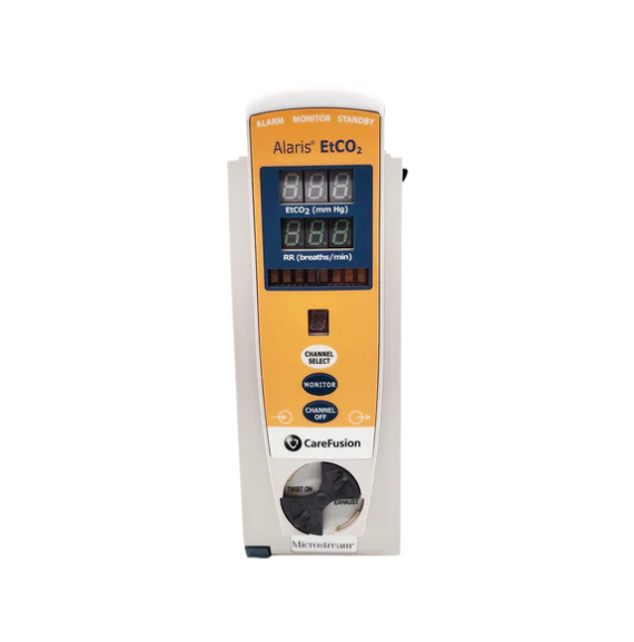 The EtCO2 Module from Carefusion utilizes a side-stream capnography technique. To measure CO2, the Disposables collect a small portion of the inhaled and exhaled gases either from the ventilator disposable or directly from the patient, and deliver it to the monitor. This process also removes any moisture or patient secretions from the collected sample using a micro stream inline filter, while preserving the shape of the CO2 waveform. The Alaris CareFusion 8300 EtCO2 Module releases a gas sample through a micro-sample cell of 15 Microliters.